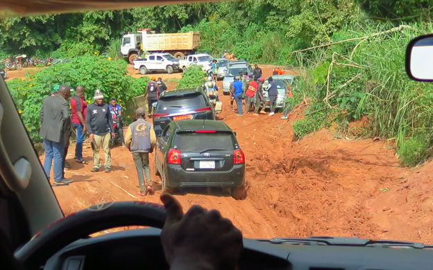 Gracias a Dios y como no llevió pudimos utilizar el atajo de la Falaise de Dschang que está en obras para tratar de abrir de nuevo la ruta. Nos ahorramos 3 horas de viaje.