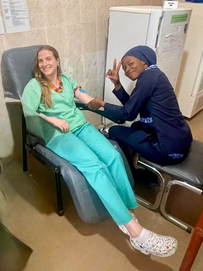 Clara, Olga, Alba y Luis aprovecharon este viaje para donar sangre .