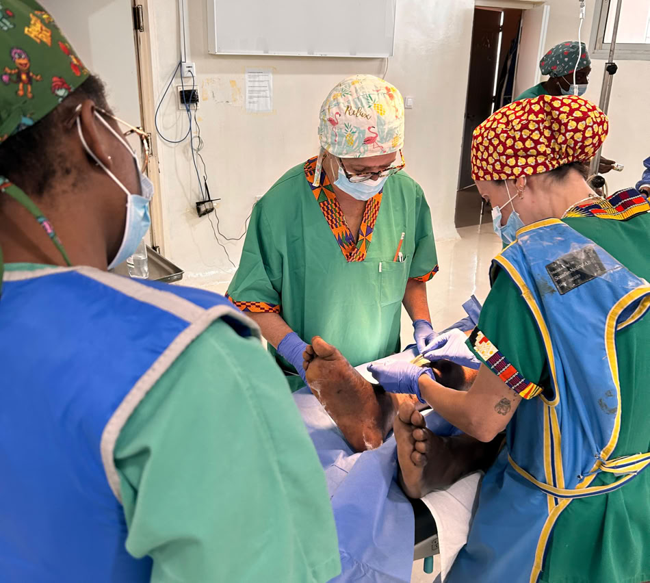 Esta vez hemos tenido que hacer algunas cirugías menos comunes que otras veces. Se ha realizado una prótesis parcial de cadera además de 3 artroscopias de rodilla. Por supuesto han seguido llegando graves accidentes, infecciones, muchas fracturas abiertas y una gran quemadura de un niño asi como la enormidad de úlceras tan frecuentes en la población africana. Tampoco nos hemos salvado de incluir pacientes que acuden de urgencia y requieren cirugía.