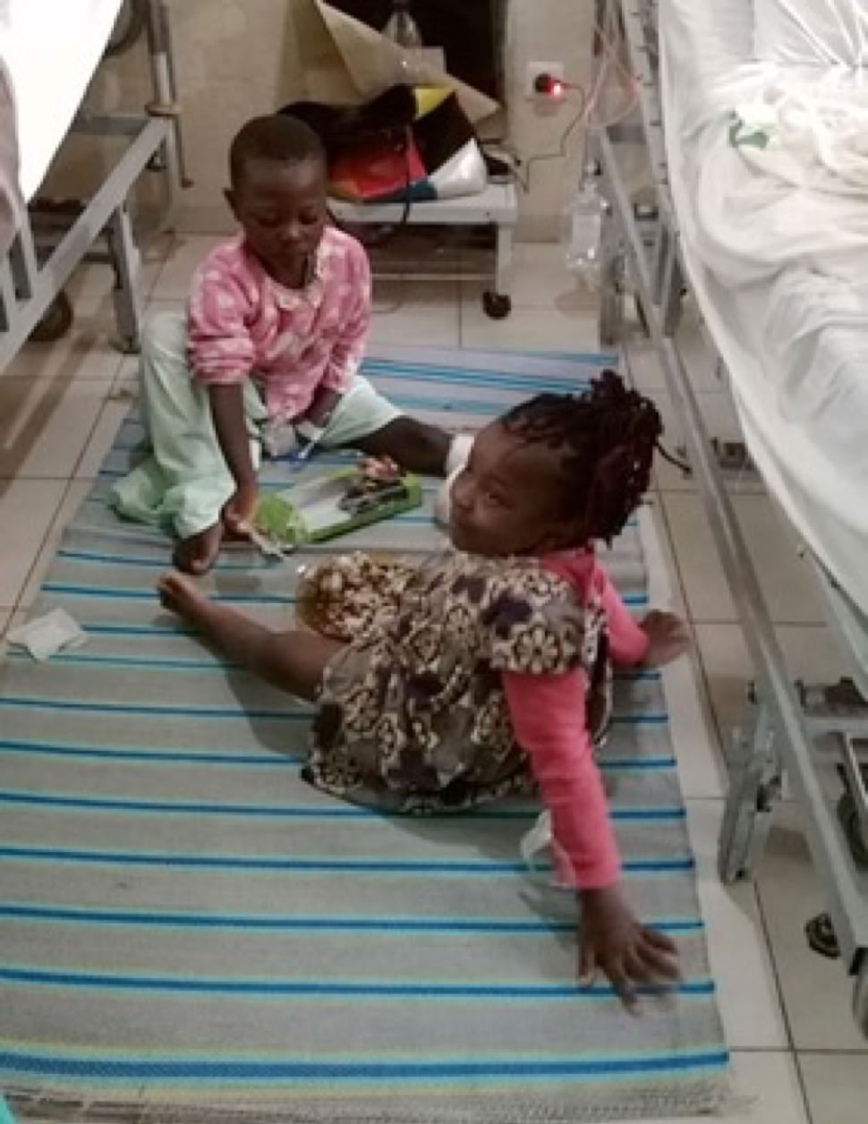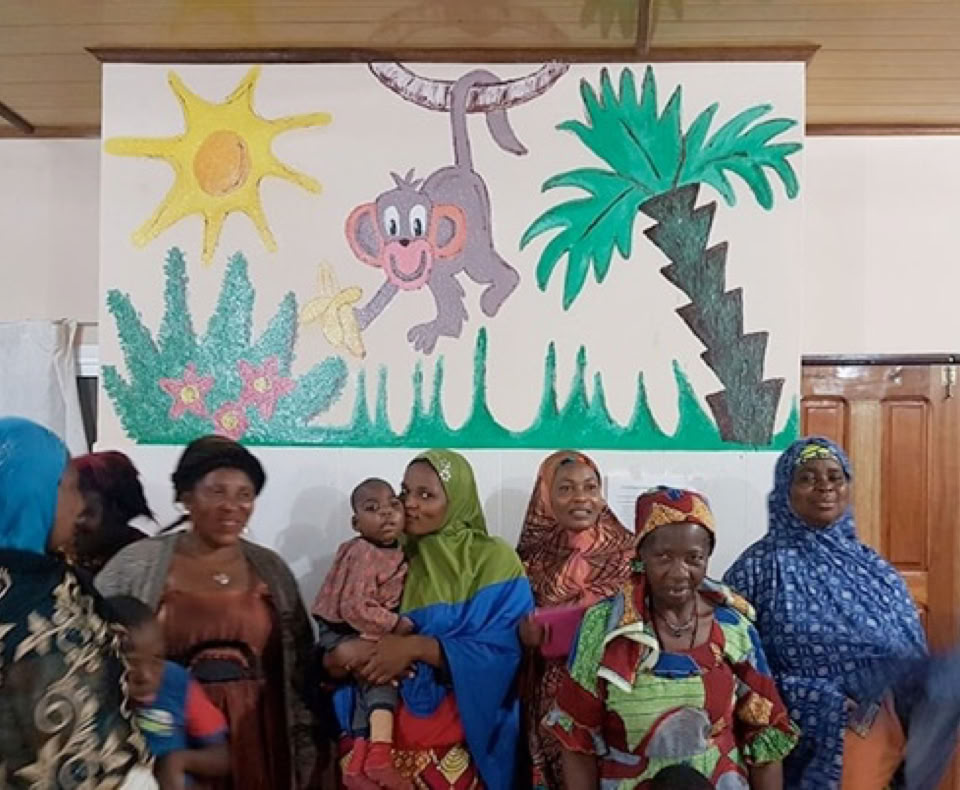 La joven voluntaria ha desarrollado sus facultades artísticas decorando las paredes de una de las salas de hospitalización de los niños con imágenes multicolores y las familias nos piden fotografiarlas bajo esa decoración.