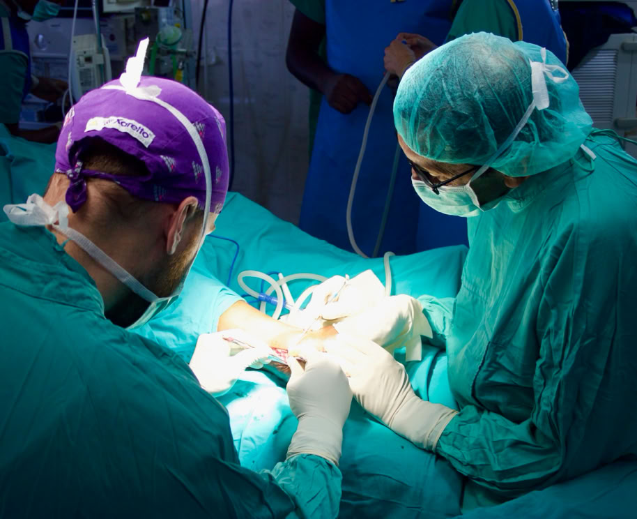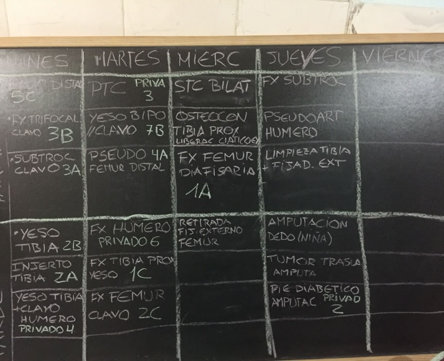 El trabajo abrumador con fracturas complicadísimas que ya nos esperaban (fractura trifocal de tibia, varias fracturas de humero y de caderas) a lo que tuvimos que añadir las correspondientes pseudoartrosis y las graves infecciones que nunca nos dejan en cada viaje.