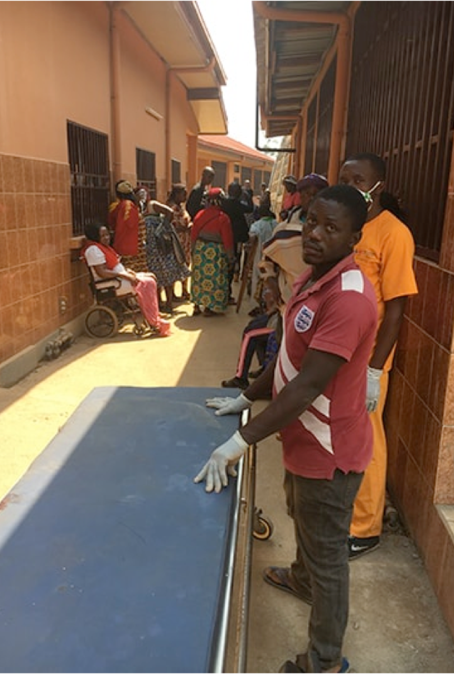 Hemos encontrado a nuestra llegada que el hospital estaba lleno de pacientes polifracturados a consecuencia de un grave accidente de tráfico la noche anterior a nuestra llegada.