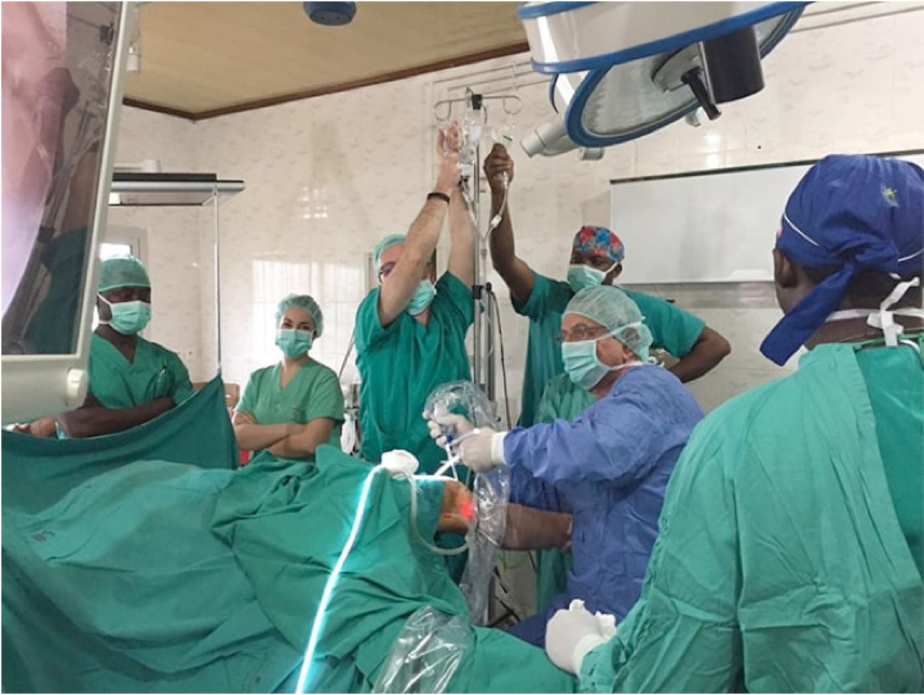 Hemos continuado realizando artroscopias. También aquí ha sido necesaria la colaboración de anestesistas y enfermeros para poder comprimir los sueros necesarios al no disponer de las bolsas de suero utilizadas en Europa para esa cirugía.