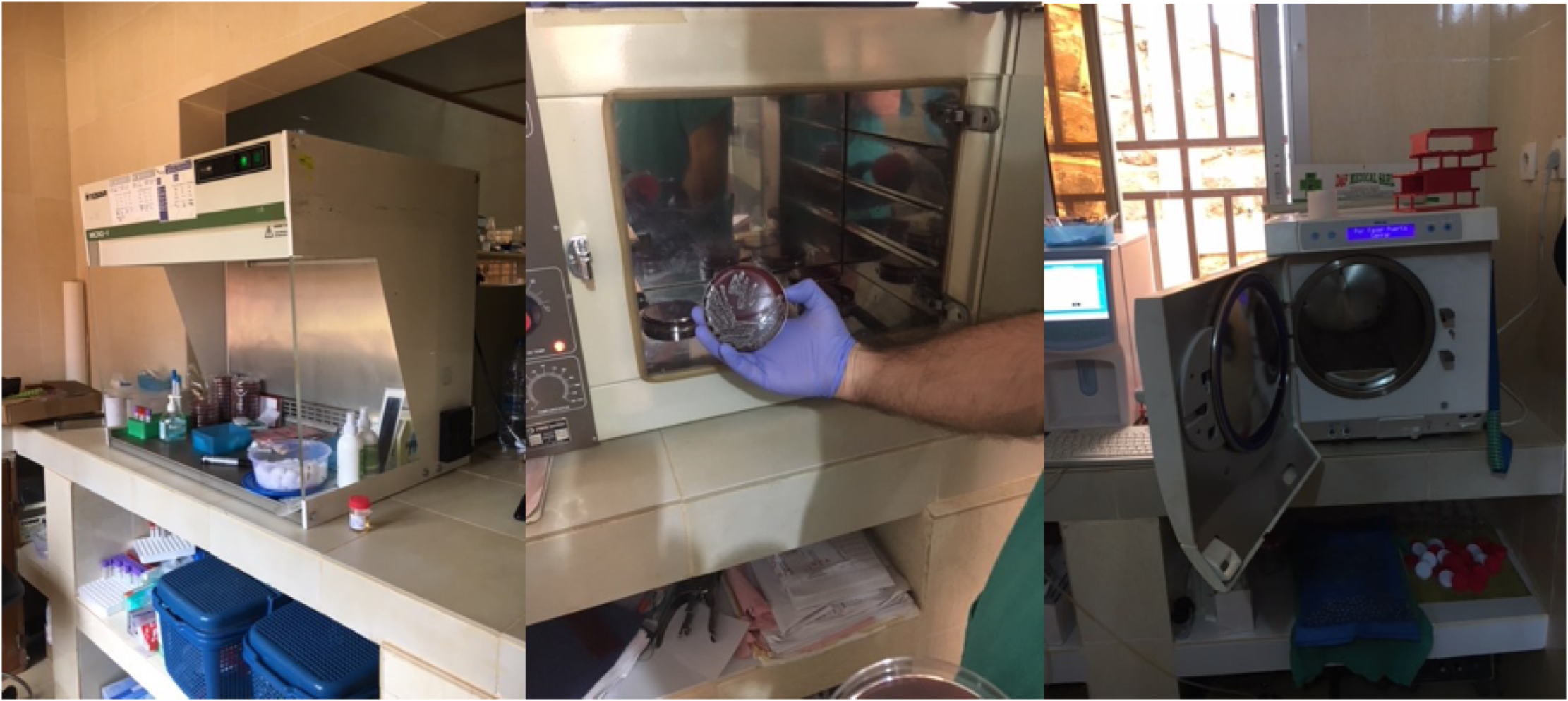 Otra nueva adquisición corresponde a los materiales del laboratorio Cámara, Estufa, Autoclave, Licuadora de agua destilada, placas para cultivo, discos de antibiogramas… que se han conseguido con donaciones de COEM y de la Fundación io.