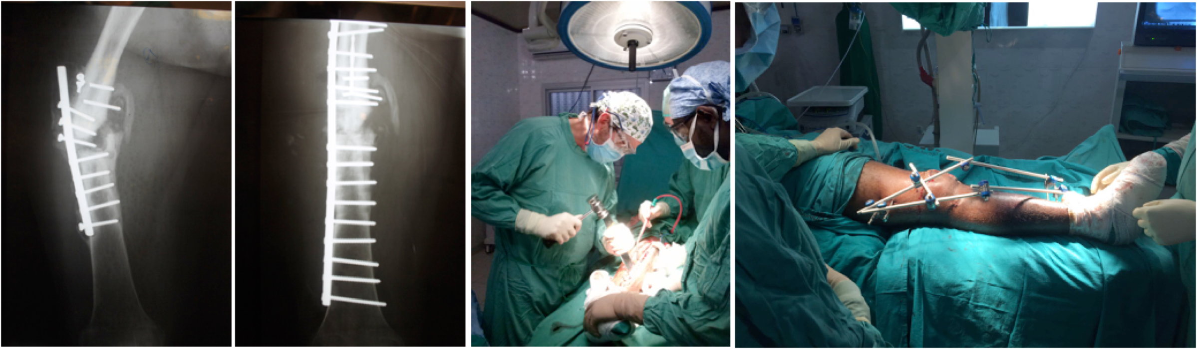 Destacamos entre otras intervenciones: 2 politraumatizados, una pseudoartrisis de diáfisis femoral con rotura de material de síntetis, una fractura conminuta de fémur, varias pandiafisitis y una reartrodesis de tobillo. Así mismo la sala de yesos no paró ni un momento de realizar curas, reducciones e incluso se colocó una tracción transesquelética.