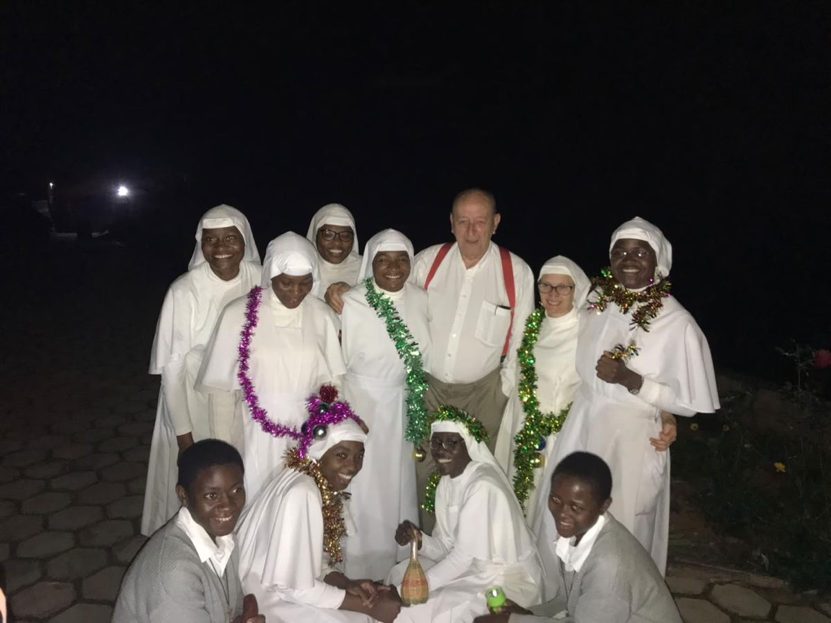 El viernes anochecido nos esperaba una sorpresa. Aparecieron todas las monjas de la comunidad en la residencia de voluntarios a cantarnos villancicos y hacernos obsequios por la Navidad. Todas ellas adornadas con guirnaldas de espumillon