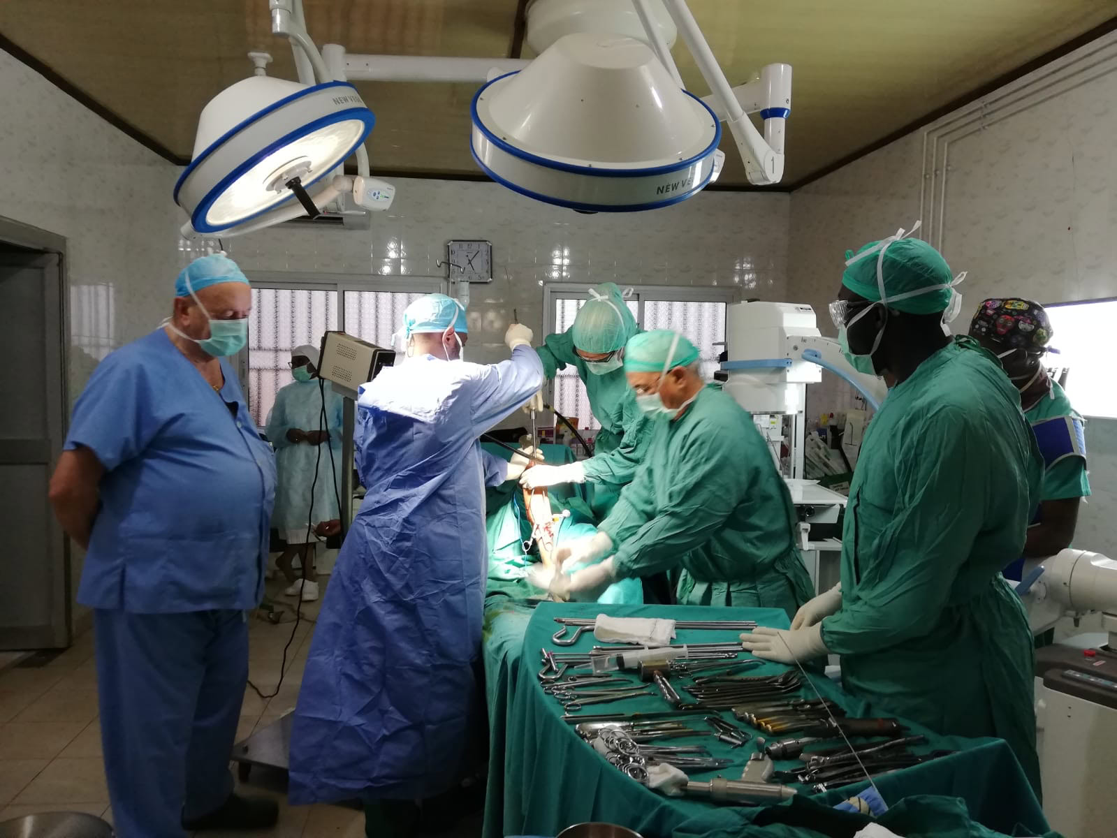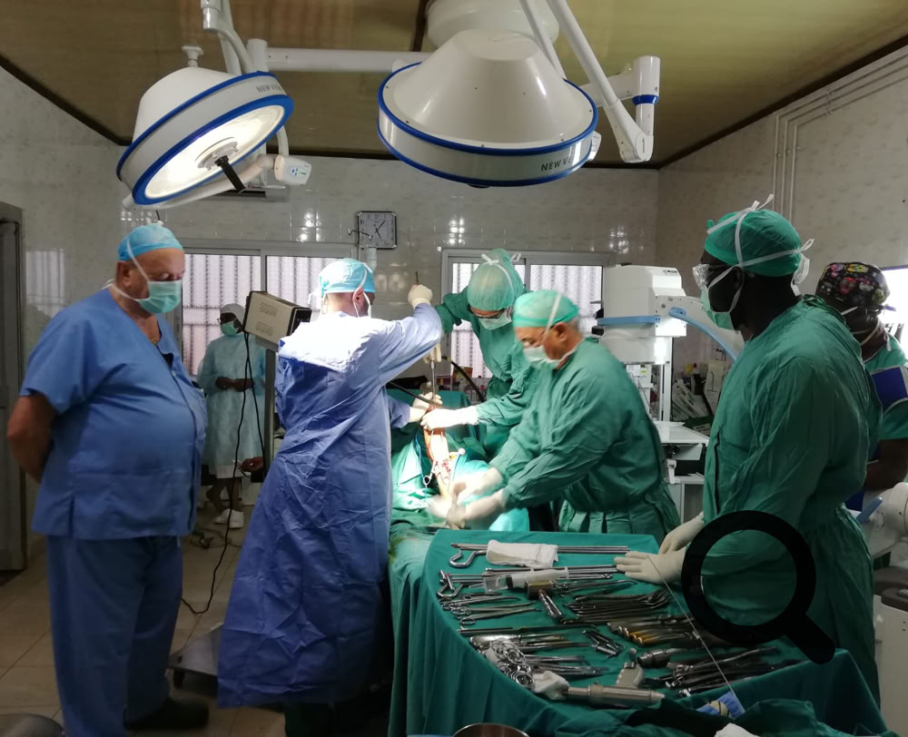 En eta ocasión hemos viajado a Camerum los doctores Epeldegui, Usoz, Aragones, Garcia Alfaro y Martin Fuentes (traumatologo/as) Los doctores Esparza y Vicedo ( anestesiologos) y Lola Soto (instrumentista).