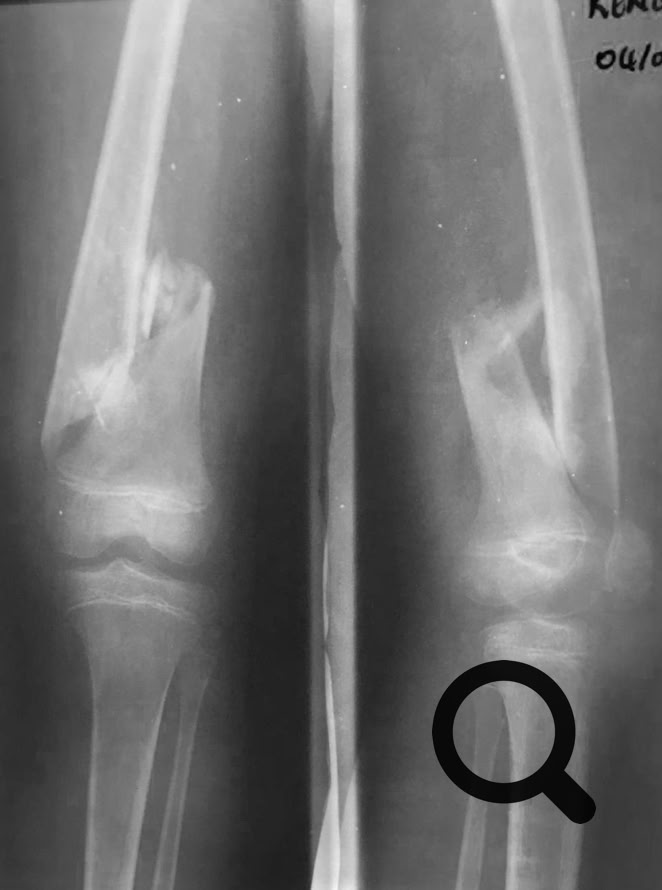 Una cosa queda clara, los “masajes tradicionales cameruneses“ no son efectivos en el tratamiento de las fracturas de cualquier hueso, tanto en niños como en adultos y conducen inevitablemente a pseudoartrosis muy difíciles de tratar.