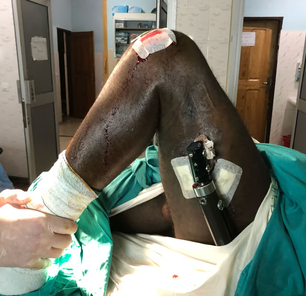 Y como traca final, el viernes por la tarde cuando íbamos a preparar ya las maletas para el viaje de vuelta, tuvimos dos urgencias que requerían cirugía de urgencia. Una artritis séptica de rodilla en un paciente de 21 años operado en otro centro hacía tiempo de un Girldestone por lo que suponemos fueron las complicaciones de una artritis séptica de cadera y con una osteomielitis del fémur. Y un paciente con luxación abierta de rodilla, fractura de cóndilo externo y fracturas abiertas de metatarsianos. Osea, toda la tarde del viernes trabajando.