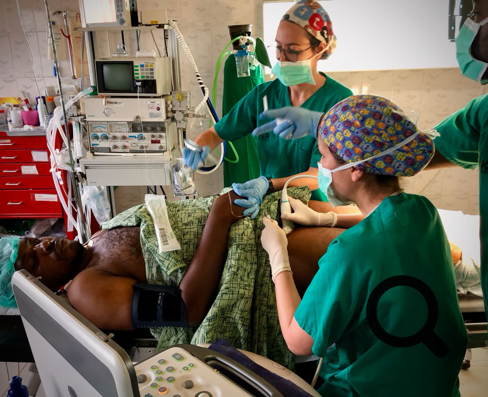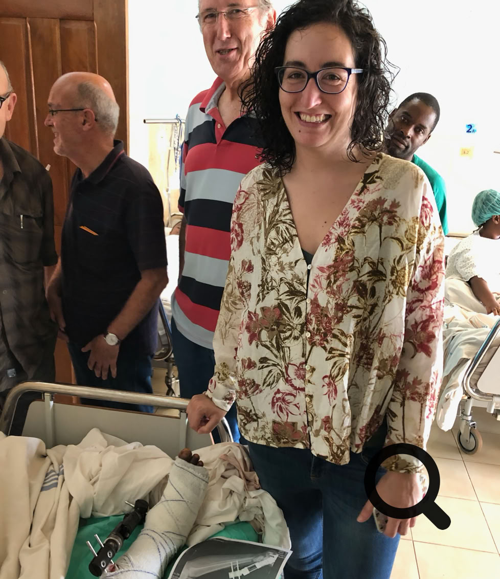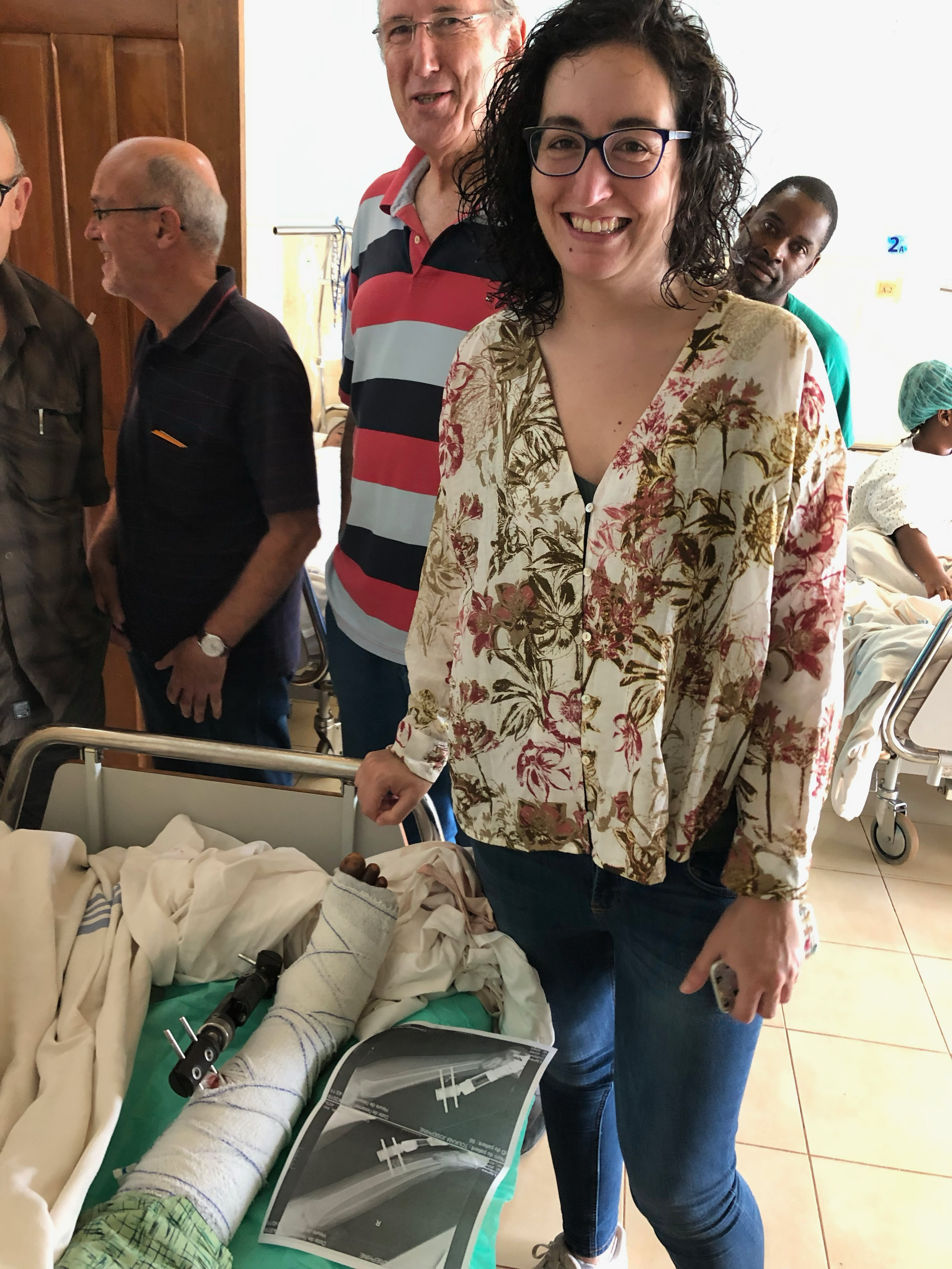 La Dra. Zorita que viajaba por primera vez a nuestro Hospital en Dschang, ha visto patologías que en nuestro medio habitual en Europa son impensables. En la fotografía aparece junto a una paciente a la que le colocó un fijador externo por una fractura conminuta de pilón tibial abierta grado III B. También el Dr Soriano y el Dr Sotillo, que también era su primer viaje, pudieron actuar directamente en intervenciones que ya son muy raras para nosotros en el primer mundo.