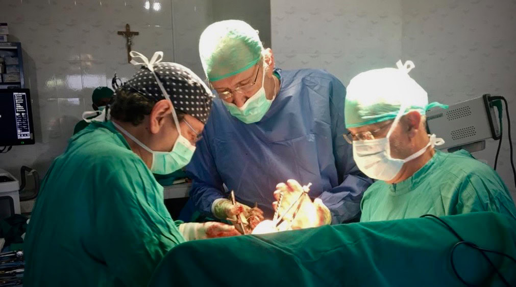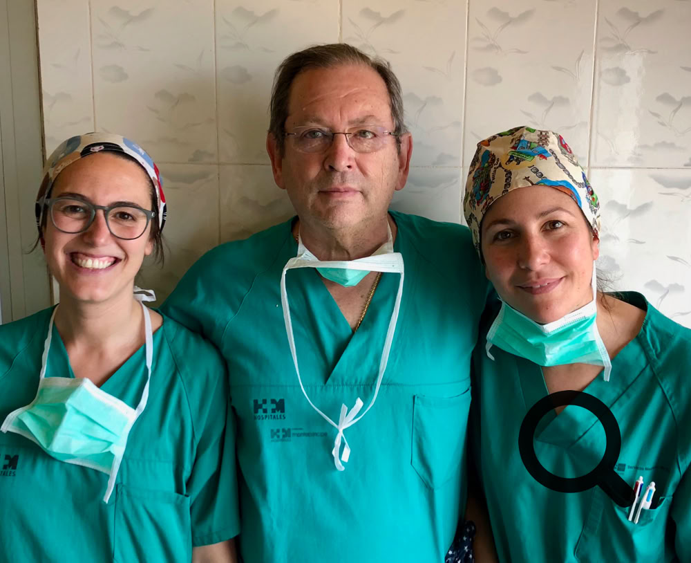 Reunión de antiguos amigos del Hospital de Móstoles que hacía muchos años que no operabamos juntos, (De izquierda a derecha, Dr. Truan, Dr. Soriano y Dr. Sotillo)