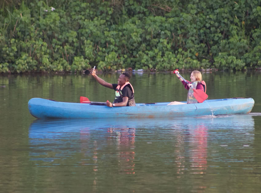 También tuvimos tiempo para ir el miércoles por la tarde a dar un paseo por Dschang y terminar tomando unas cervezas “au bord du lac”, donde algunos osados hacen ejercicio remando.