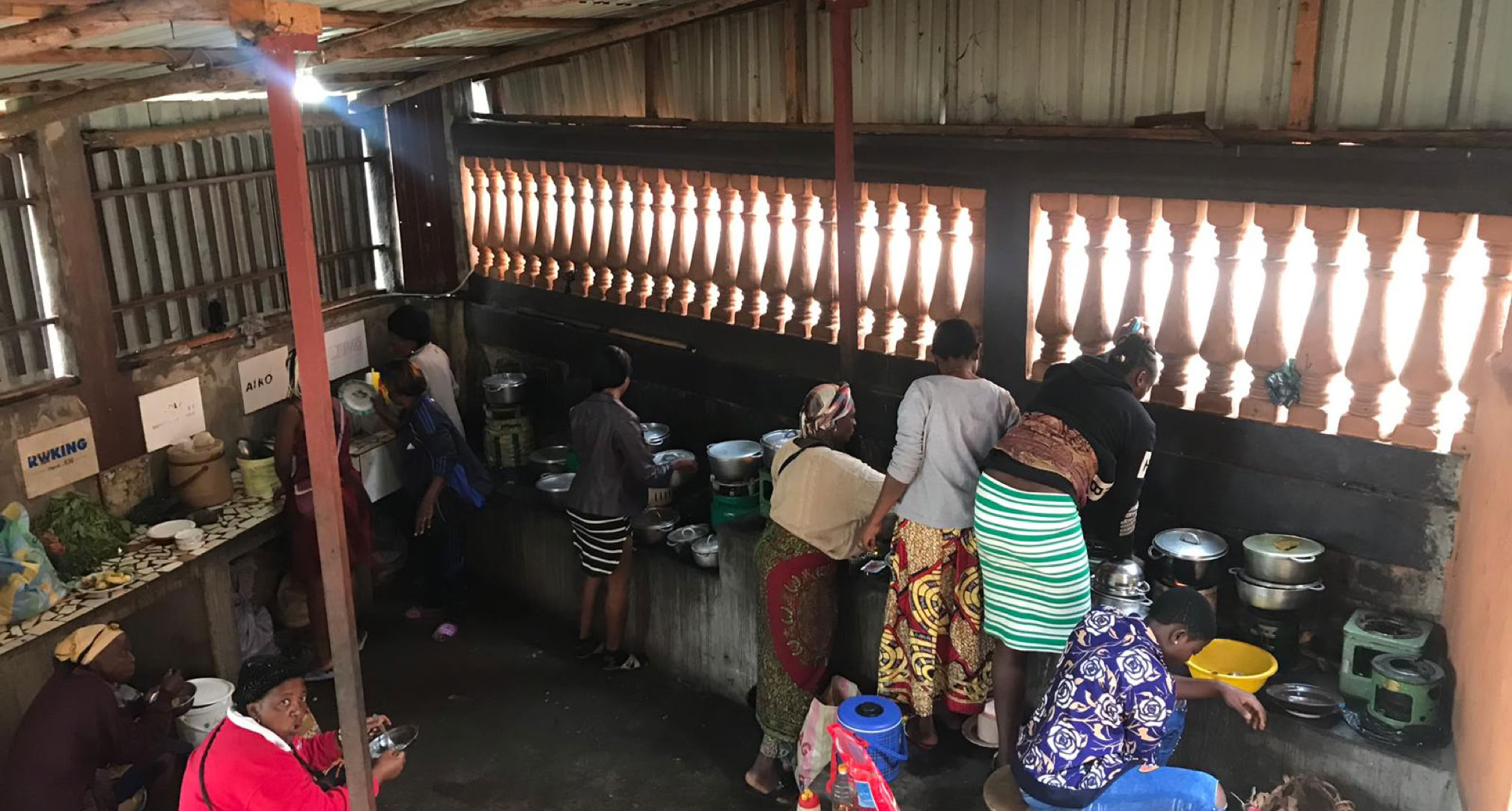 Llama la atención, que a diferencia de nuestros hospitales la comida de los enfermos las preparan las familias. Por eso las monjas han dispuesto de un espacio para facilitar la condimentación de las comidas que se hace habitualmente con carbón vegetal.