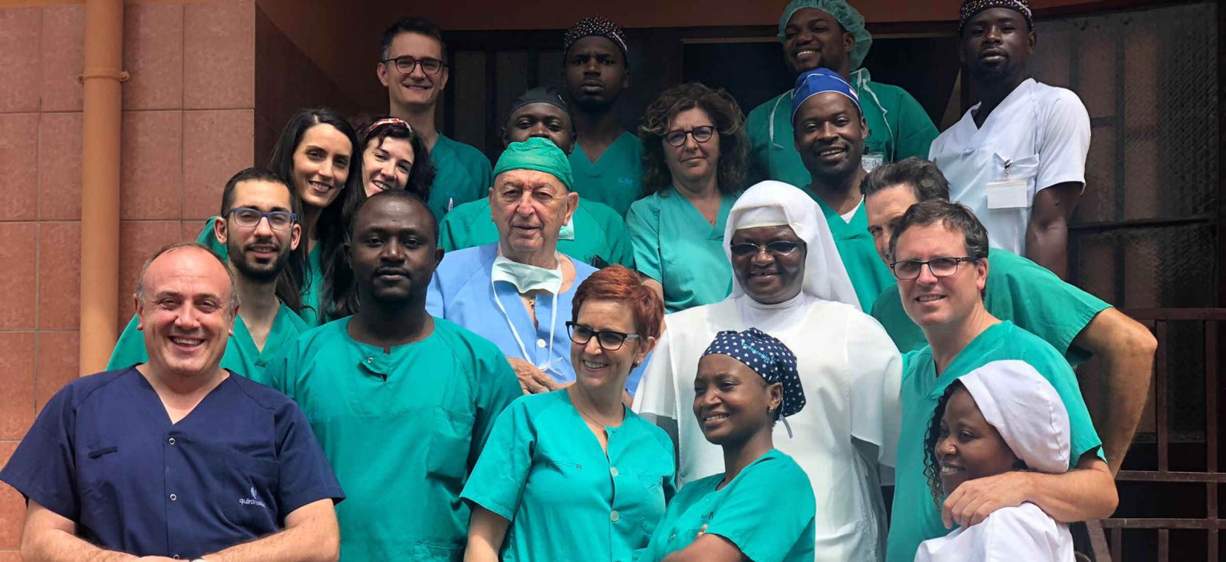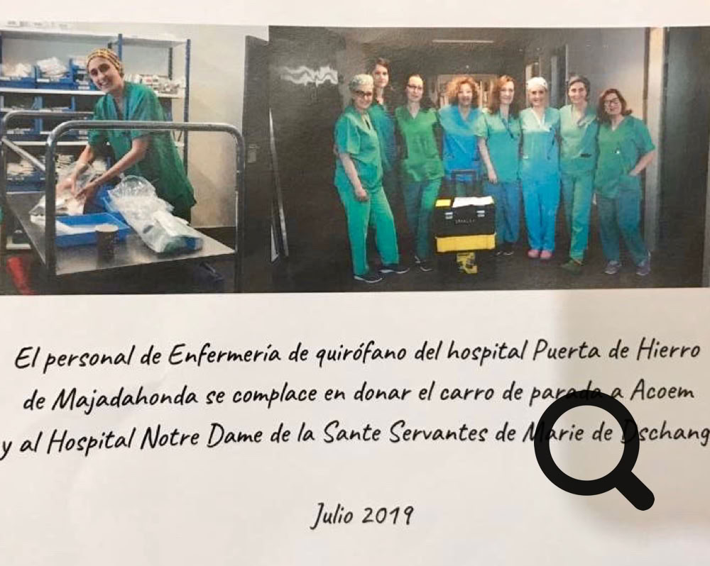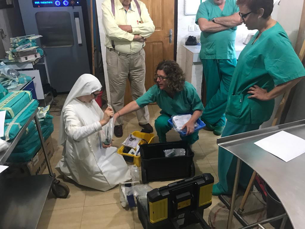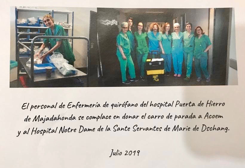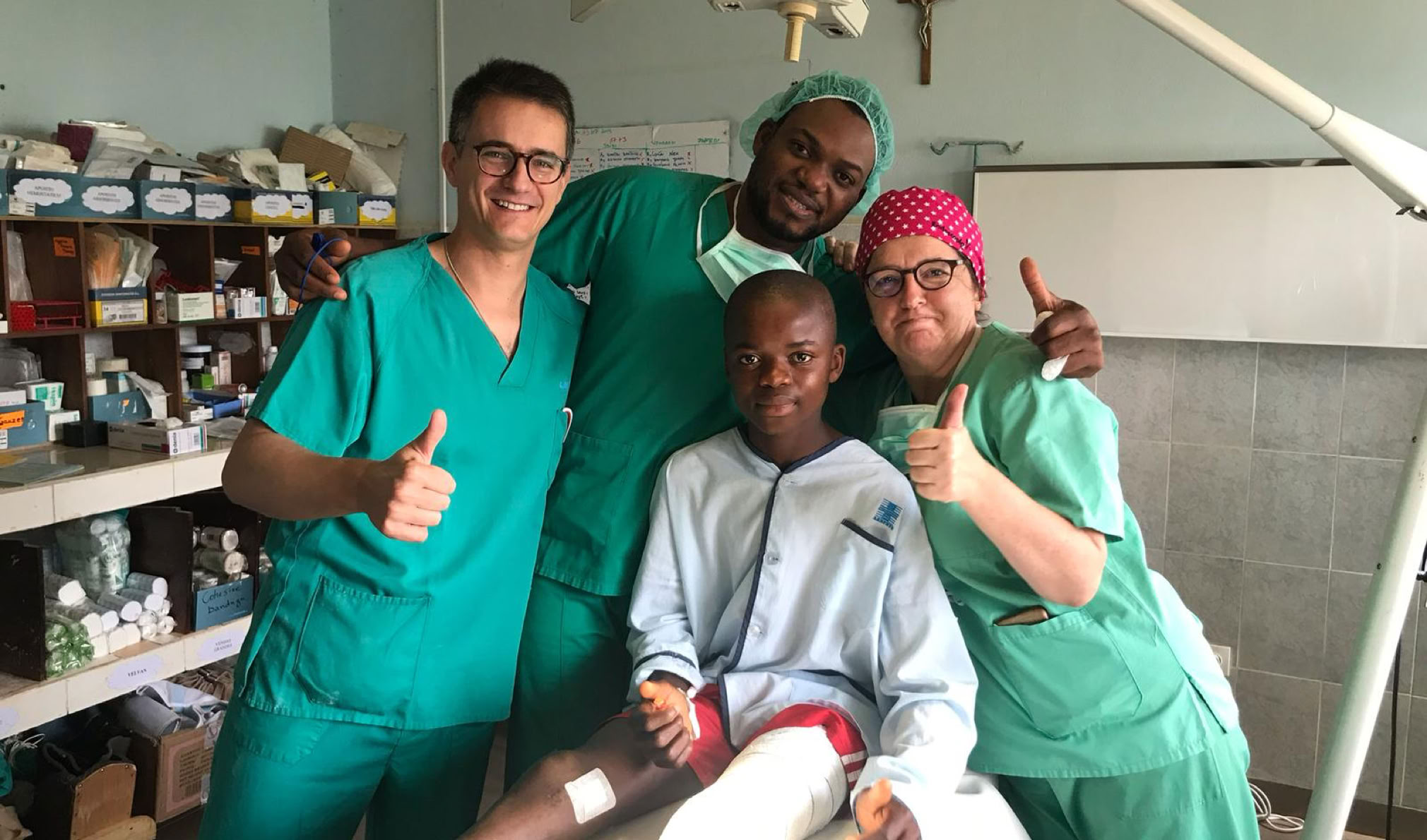 En esta ocasión hemos viajado los doctores Tomas Epeldegui, Pedro Torrijos, Sergio Bartolomé, Jesús Ferrer y German Galindo ( Traumatólogos) Javier Mora (Anestesiólogo) Ángeles Lozano y Elena Ramos (Enfermeras) Allí nos encontramos con Teresa, otra enfermera que había ido con la campaña de los oftalmólogos y con el personal local: Los Doctores Lionel Nges y Alain Say que se ocupan de la trauma, con Etien que realiza unas estupendas anestesias Y con Mari Diane la instrumentista y sor Silvana que está al mando del área quirúrgica.