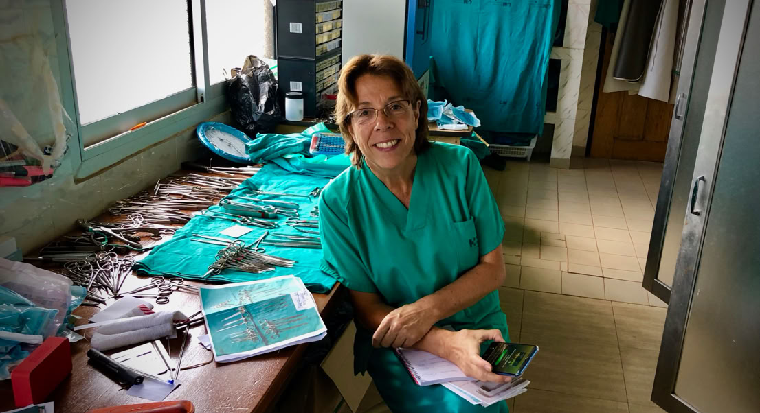 Marisa Cordoba, la enfermera que mas veces ha viajado a Camerún y que fue la responsable de organizar las cajas del instrumental quirúrgico en aquella ya tan lejana expedición de 2015, ha vuelto a poner orden ya que el aumento de instrumental nos obliga a rehacer casi todo. Gran trabajo reorganizando, haciendo los listados de cada caja, renombrándolas y fotografiándolas, para que no quede duda de lo que cada una contiene.