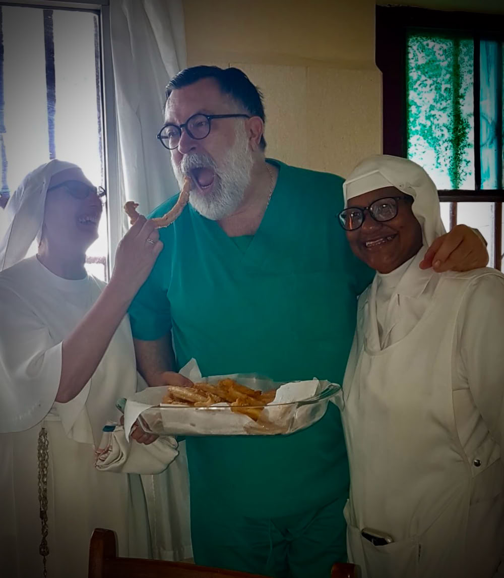 El dia empezó con sorpresa ya que las religiosas comandadas por Sor Pilar irrumpen en el desayuno con abundantes churros en honor del cumple de D. Luis y que sirvió de primera felicitación