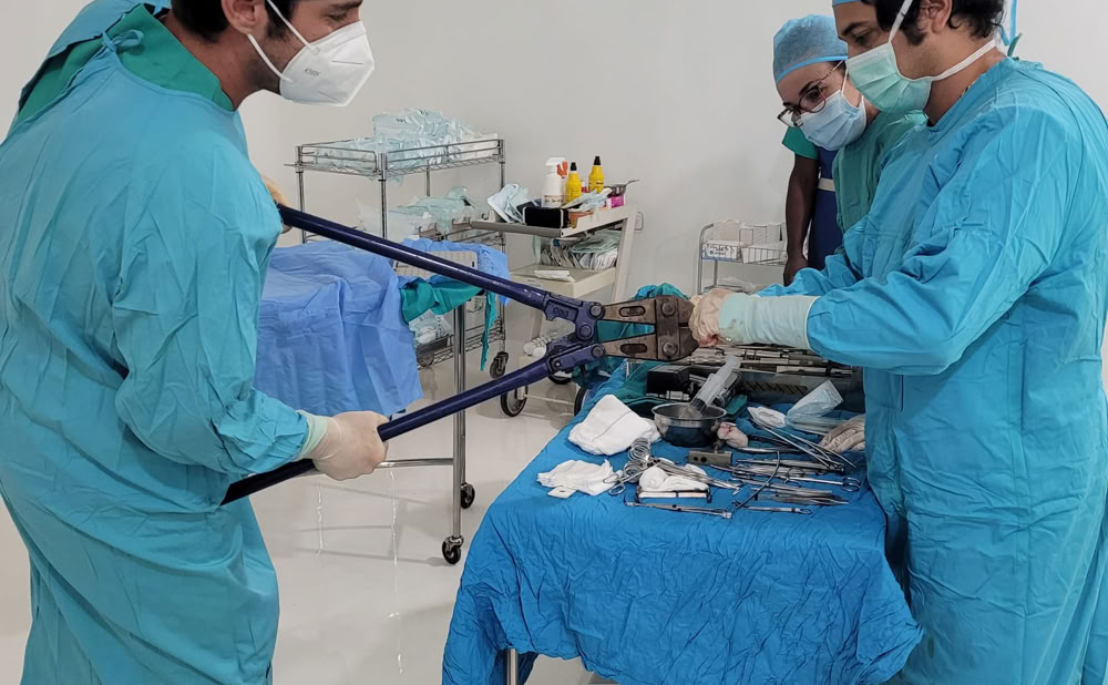 Las positivas fueron múltiples: 1º observar como nuestro trabajo durante estas 57 expediciones en 6 años ha dado su fruto, el personal local ha atendido de forma eficiente la gran mayoría de procesos traumáticos durante los 15 meses que hemos estado sin acudir a Camerún. 2º comprobamos el cumplimento de los protocolos de cura e higiene pre y postoperatorios. 3º durante la semana, hemos podido operar a doble quirófano separando las cirugías limpias de las contaminadas, optimizando la higiene de las intervenciones y acortando los largos horarios habituales de las jornadas quirúrgicas.