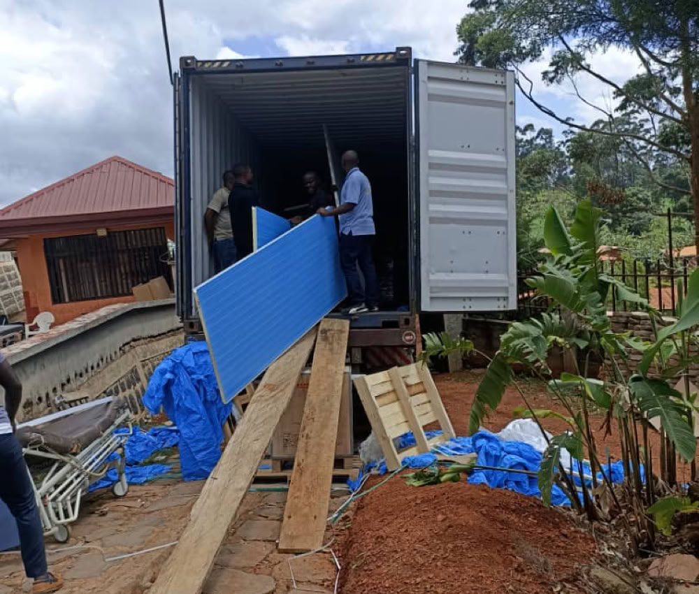 Pudimos además ver in situ los trabajos de construcción del nuevo incinerador del hospital y la llegada del contenedor desde España con material y las nuevas placas solares que serán instaladas próximamente.