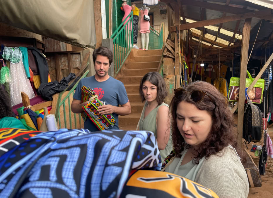 Por supuesto, también hubo tiempo para bajar a la ciudad y hacer las clásicas compras de telas en el mercado de Dschang, dar un paseo para conocer la calle y luego cenar un pollo bien calcinado “pollo a la pared”, con unas cervezas en un “establecimiento” de la zona de la Universidad.
