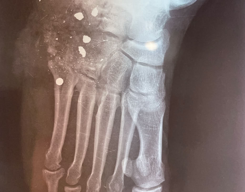 Ambos se resolvieron el lunes por la mañana con una prótesis parcial de cadera y el disparo en el pie con una cirugía de desbridamiento, limpieza y cierre.