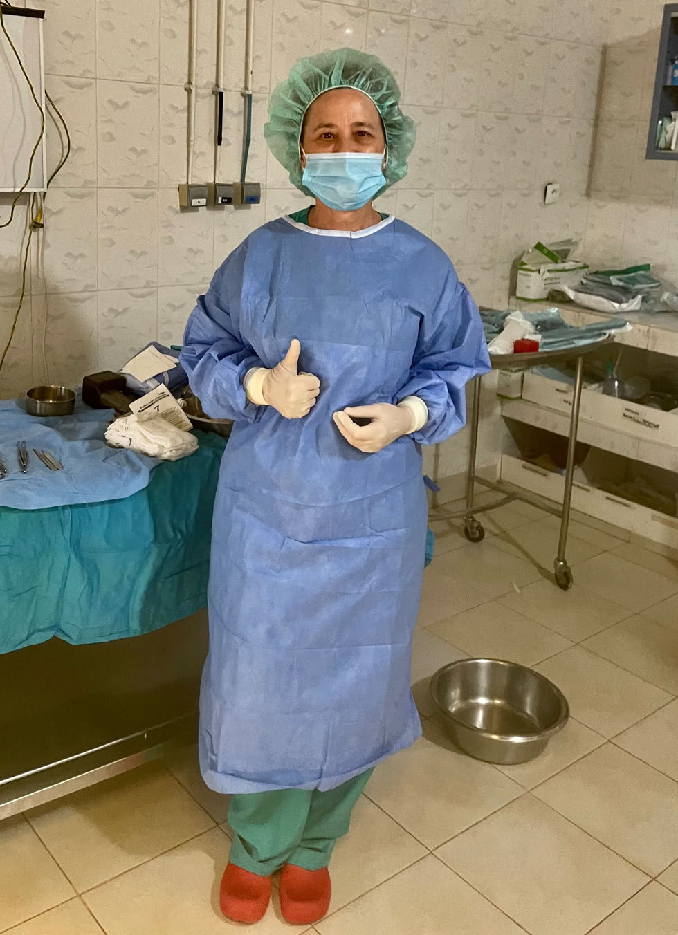 Y el lunes cuando ya llevábamos tres intervenciones de la grandes, empezamos con el trabajo habitual. Después del rezo de las 8 de la mañana en la capilla y la presentación del equipo comenzamos el trabajo en consulta y quirófano