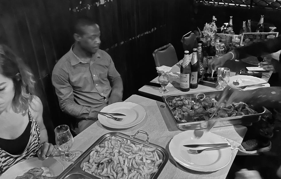 Cena de pollo con patatas fritas y plátanos fritos mientras contemplamos estupefactos como la mayoría de los habitantes de este país eran antimadridistas y animaron al un “equipucho” inglés, entre horribles muestras de antideportividad.