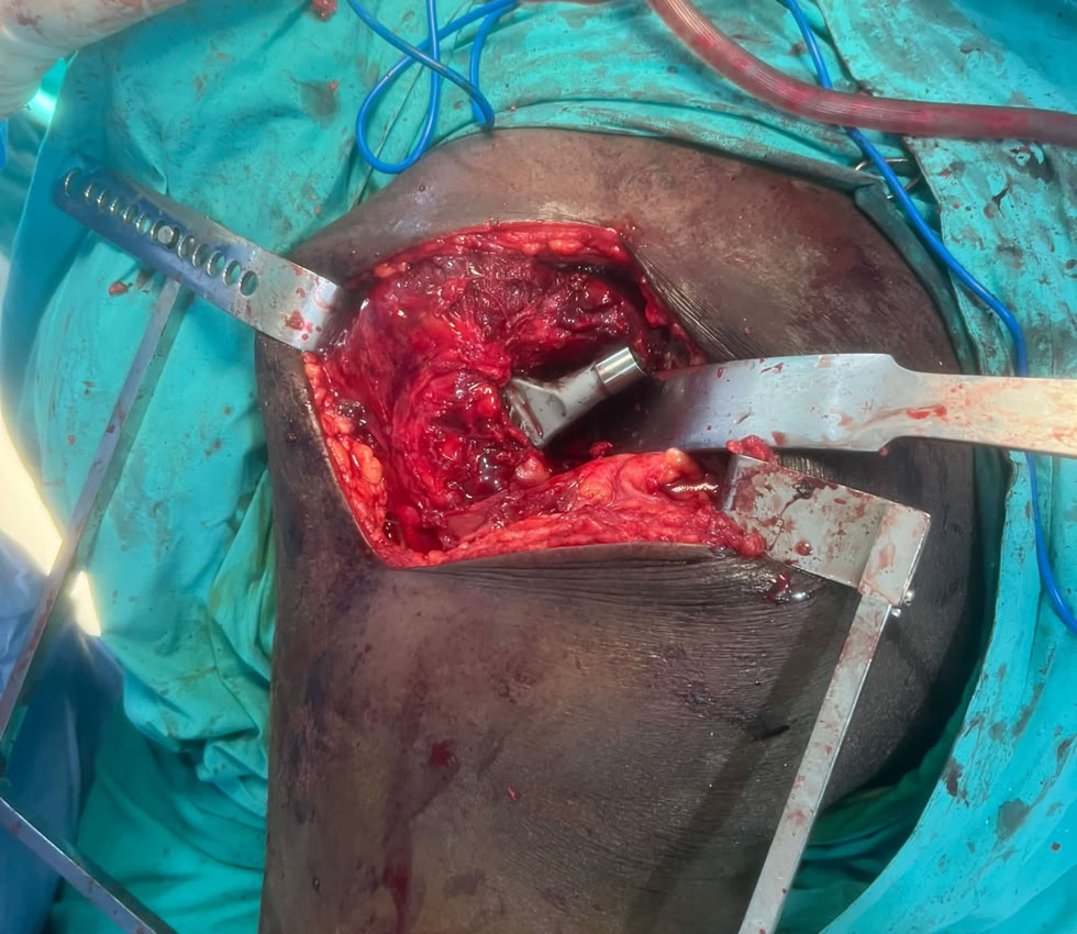 Nada mas llegar, fractura de fémur y tibia abiertas . Dos magníficas traumatólogas, una enfermera excepcional y una anestesista fuera de serie, resolvieron la urgencia.