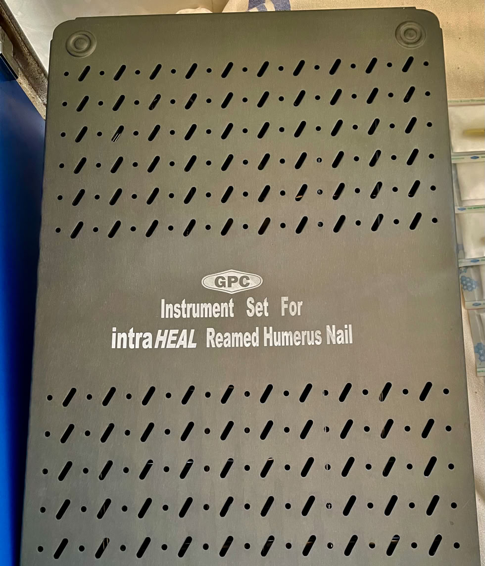 Hemos comprobado que ya tenemos los clavos para húmero con su correspondiente instrumental y que el motor que llevamos de Stryker funciona correctamente.