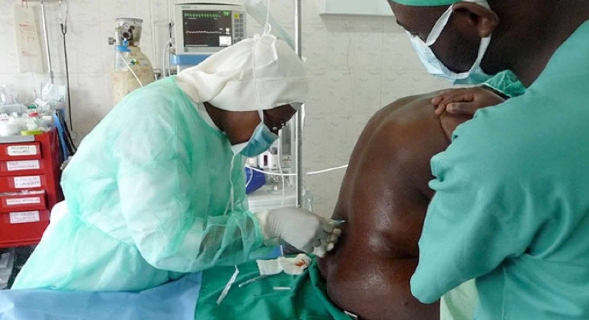 La hermana Ane Marie ha realizado unas magníficas anestesias por punción raquídea. Al faltar el instrumentista hemos comenzado a entrenar en instrumentación quirúrgica