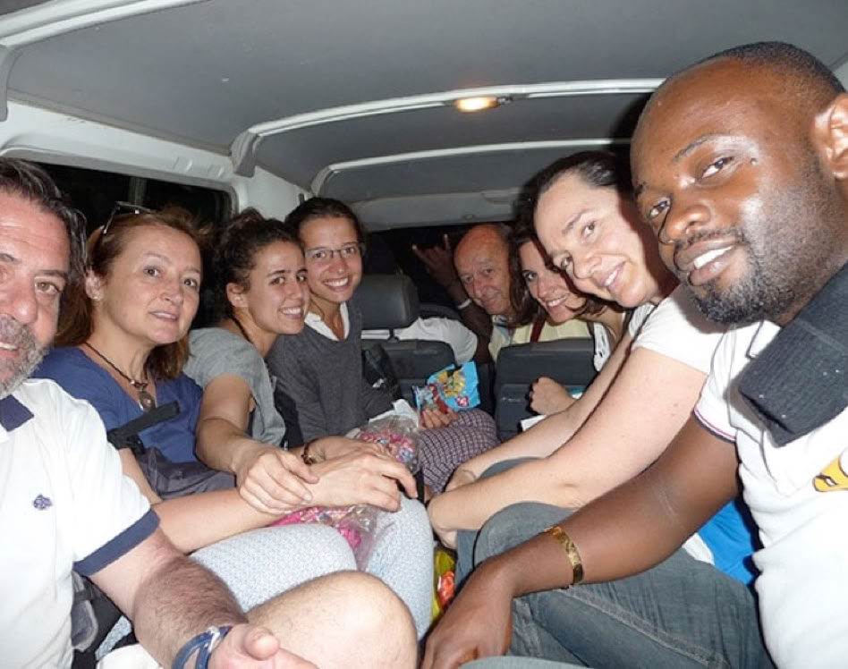 Los trayectos se realizan en el Land Rover en el que no se desperdicia un centímetro cuadrado y se va recogiendo gente por el camino para acercarlos a su destino.