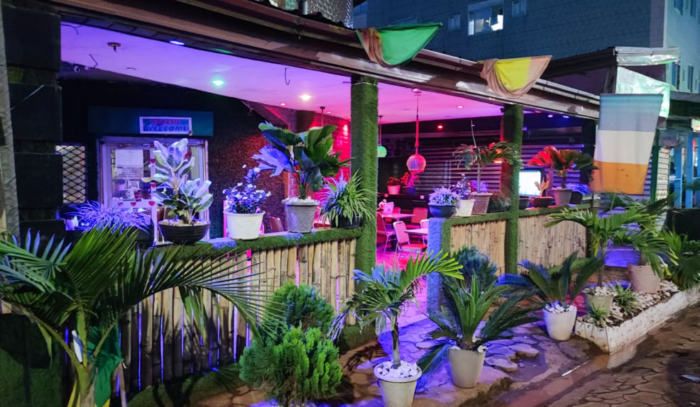 Antes de volver hemos ido al mercado de telas y a cenar el famoso pollo a la brasa que en esta ocasión ha sido en un restaurante de Dschang frecuentado por universitarios que esta muy concurrido