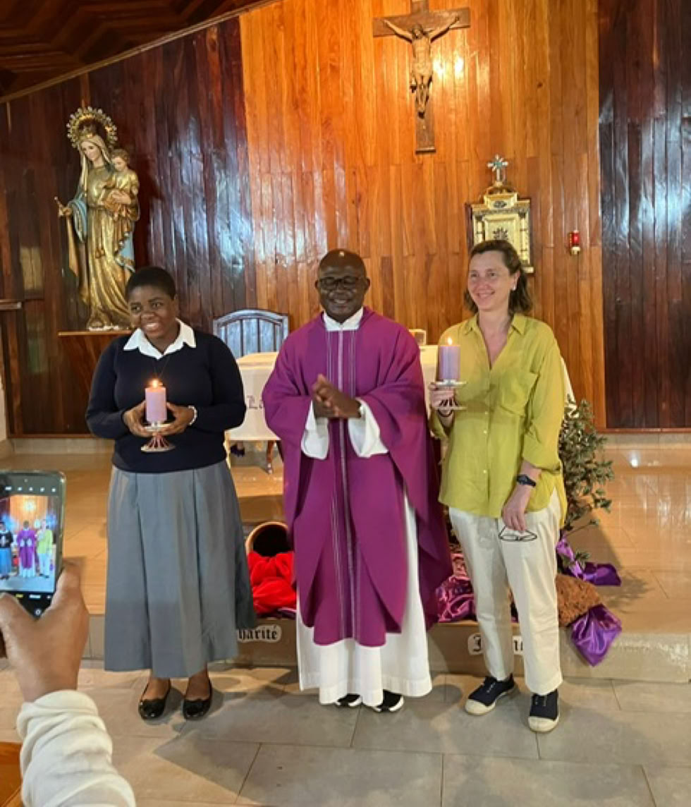 Coincidió su cumpleaños con el de una postulante a quienes cantaron el Cumpleaños Feliz, primero en la capilla y luego en la residencia y celebramos su cumpleaños con un bizcocho que hicieron las monjas.