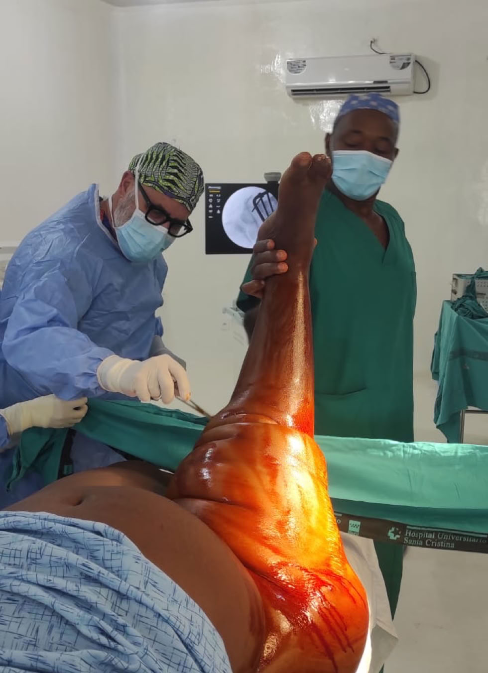 Hemos encontrado varios enfermos amputados con los muñones abiertos por infecciones y se han tenido que realizar dos amputaciones por traumatismos grabes que impidieron conservar la extremidad. Los doctores Jannick y Enmanuel están realizando una magnífica labor asistencial.