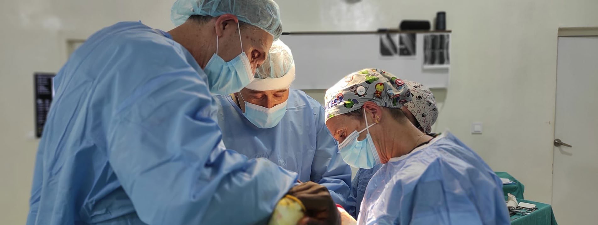 Aún así realizamos 33 intervenciones quirúrgicas, entre ellas, tres prótesis de cadera, una artrodesis lumbar que realizaron con destreza el Dr Fernández Baillo y la Dra Zarco, teniendo en cuenta los medios de los que se dispone allí, tres pseudoartrodesis de fémur, dos amputaciones mayores, una supra-condílea y otra infra-condílea, una rotura del tendón rotuliano “subaguda”, un Blount más epifisodesis, una fractura bifocal de antebrazo, una gran quemada; y el resto clavos de tibia, fijadores externos, una fractura de tobillo, amputaciones menores de dedos y limpiezas de infecciones en pies diabéticos, etc.