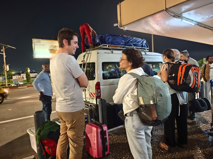 El viaje de ida transcurrió sin mucha incidencia, a pesar de que lo realizamos con nuestra amada compañía Air Maroc, que últimamente nos sorprende por la normalidad de sus operaciones. Tras un pequeño retraso del vuelo de Madrid a Casablanca del viernes, pudimos reunirnos todos en el aeropuerto para iniciar sin incidencias el vuelo con destino a Duala. Tras un largo viaje con un avión lleno de pasajeros aterrizamos de madrugada en el aeropuerto de Duala, llegando con nosotros todo nuestro equipaje facturado salvo una maleta que llegó el lunes siguiente. Fabián nos recogió en el aeropuerto para continuar nuestro viaje por carretera hasta Dschang, con la tradicional parada en la gasolinera para un desayuno rápido.