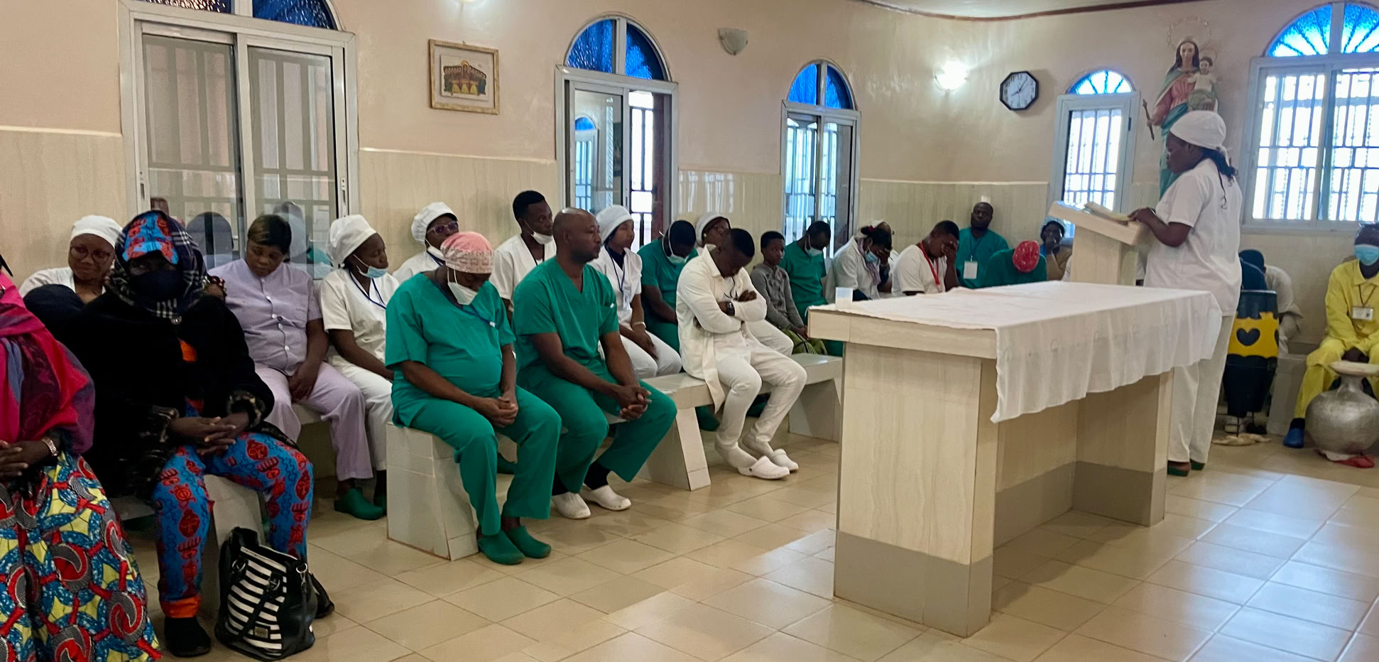 Pero antes de empezar fuimos al rezo de todas las mañanas especialmente el primer dia para además de rezar hacer la presentación de los miembros del equipo al personal del hospital.