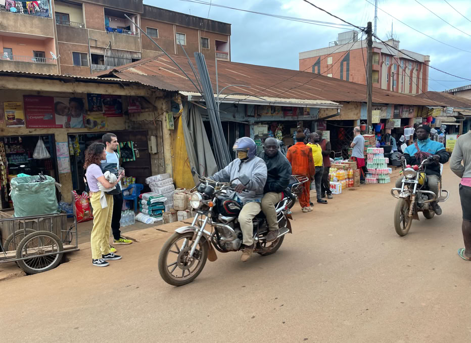 Por supuesto, también hubo tiempo para bajar a la ciudad y hacer las clásicas compras de telas en el mercado de Dschang, dar un paseo para conocer la calle y luego cenar un pollo bien calcinado “pollo a la pared”, con unas cervezas en un “establecimiento” de la zona de la Universidad.