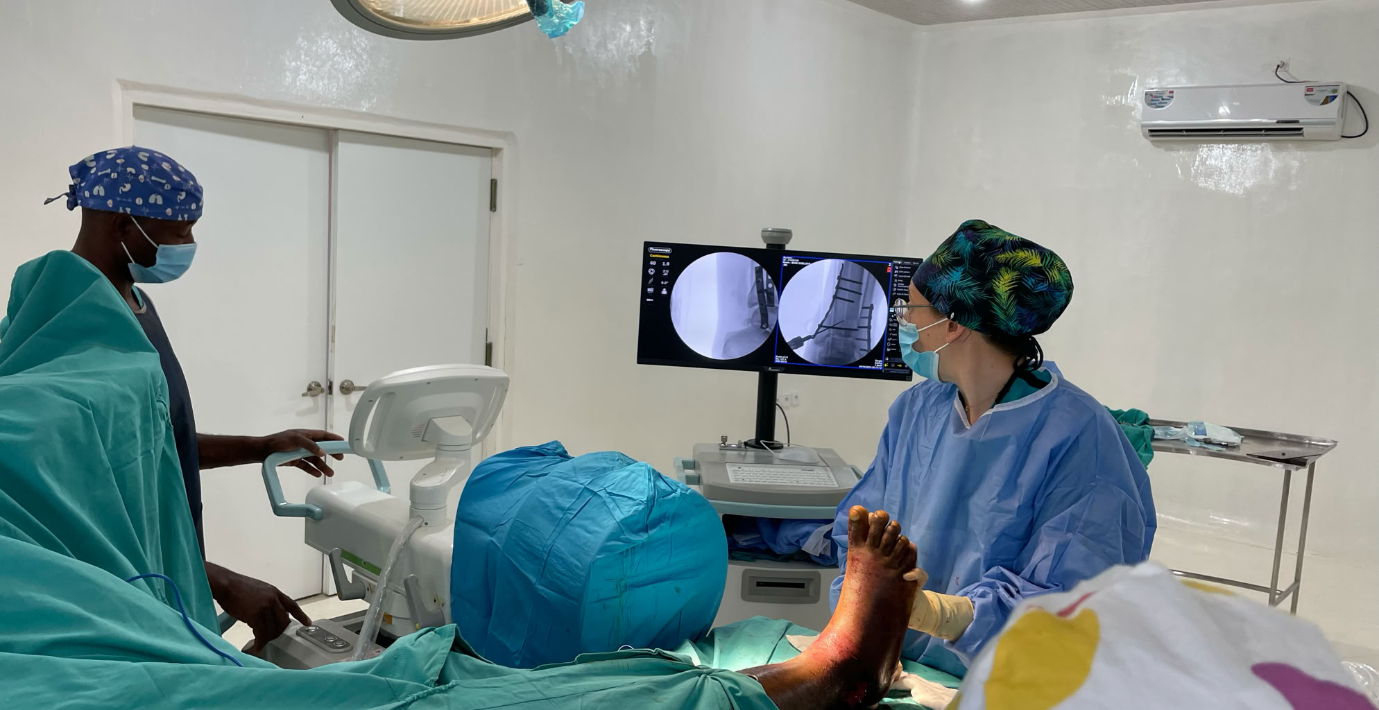 Y el domingo empezamos la tarea operando una fractura diafisaria de fémur y una fractura de tobillo (Pilón tibial). De esta manera hemos podido estrenar el nuevo equipo de Rx del quirófano que es un móndelo mas avanzado que el que teníamos hasta ahora. Una maravilla de equipo.