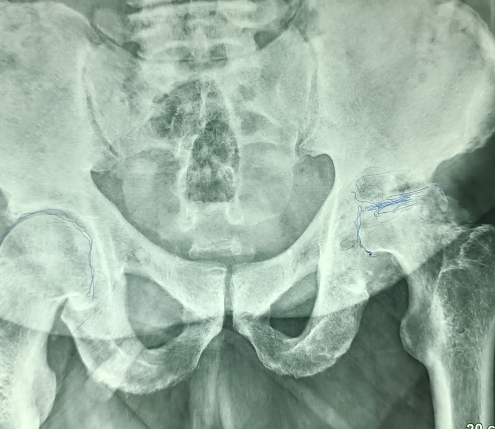 Gran carga de trabajo por las múltiples fracturas que hemos atendido, pero también hemos tenido tiempo de hacer una Prótesis Total de Cadera, a un paciente de 71 años con una Necrosis Avascular de Cabeza Femoral . Le hemos mejorado la calidad de vida, ya que estaba prácticamente inválido y aquí podemos ver como se maneja caminando a las 48 h de la intervención