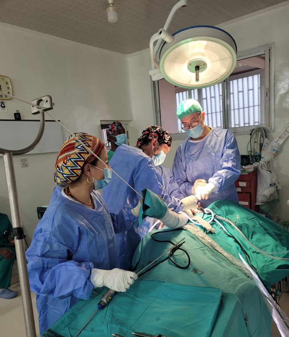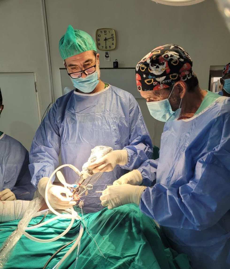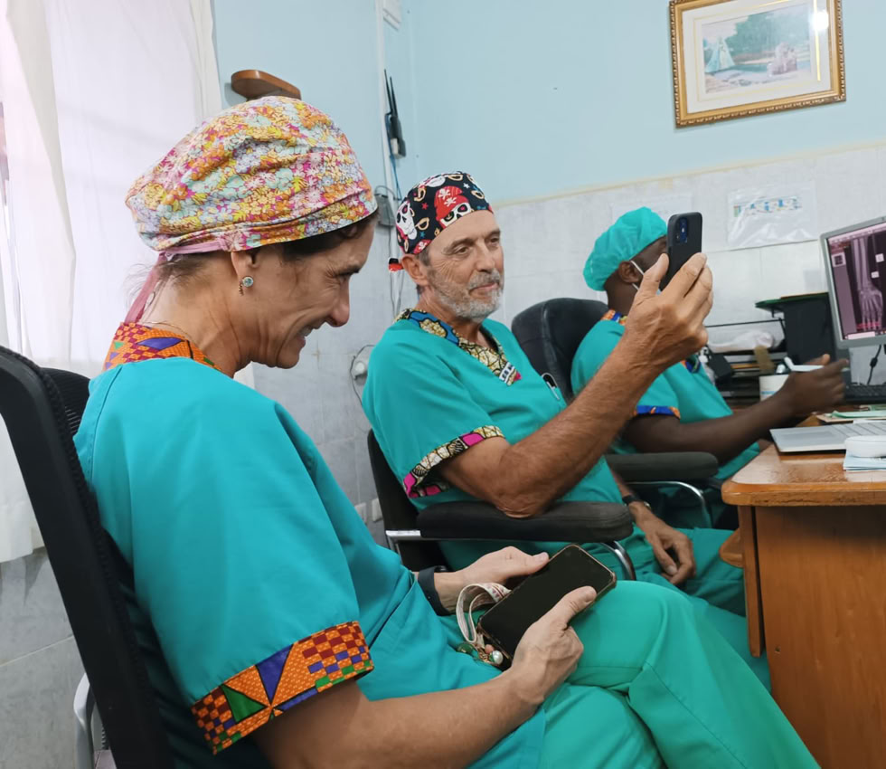 En esta ocasión fuimos: María Pérez Sánchez veterana expedicionaria anestesista, María Valdazo Rojo, Rocío Fernández Alba, Benjamín García Gonzalez y Jesús Ferrer Olmedo, Traumatólogos. Allí se nos incorporó Mercedes Ruíz Carpio instrumentista, que ya estaba desde una semana antes con la expedición de Urología.