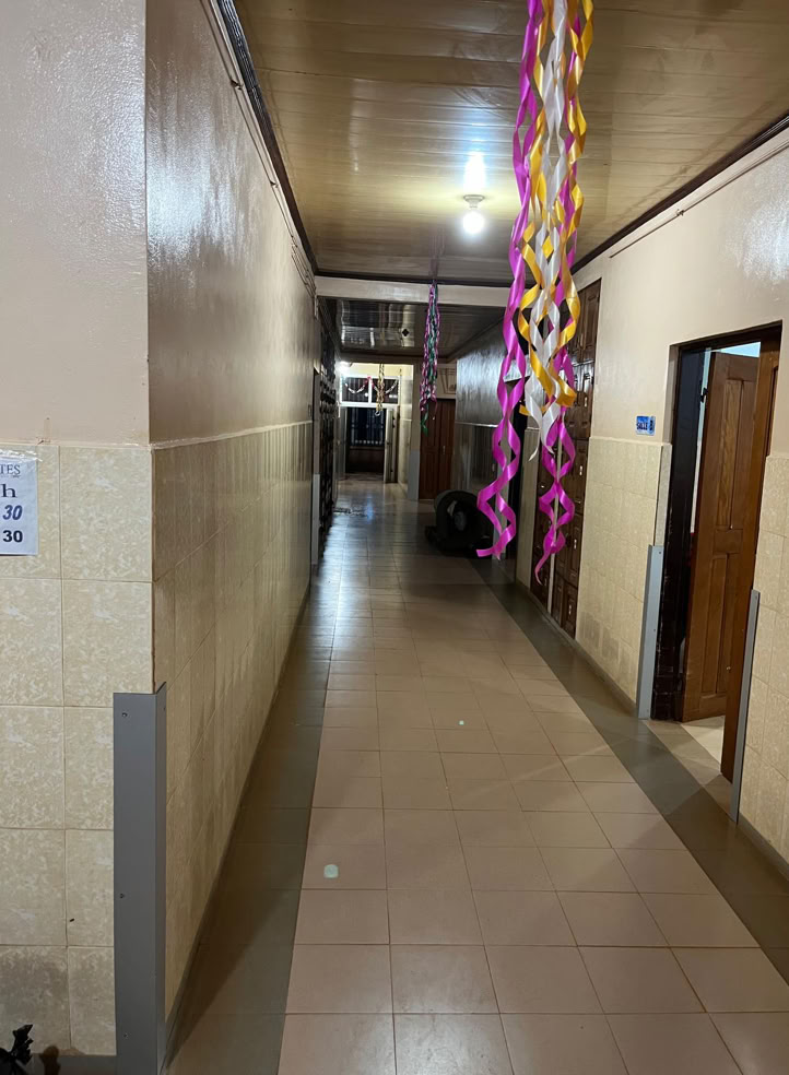 El hospital estaba decorado con guirnaldas para la ocasión.
